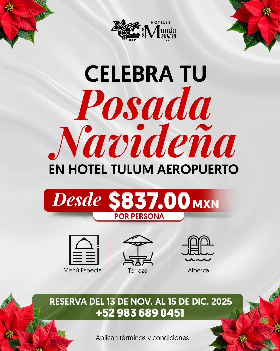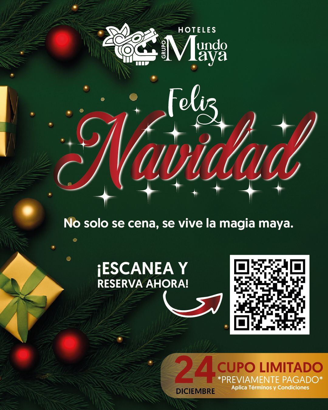 - Aplica a: Exclusivamente al menú especial de la Cena de Navidad de los Hoteles Grupo Mundo Maya participantes.